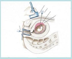 绒毛穿刺术分经腹部和经阴道两种,目前的绒毛穿刺术一般在孕妇腹部进行。孕妇只要平躺在普通的检查床即可,先用超声波检测胎儿的大小和胎盘的位置,选定好穿刺点后,医师会给孕妇做一个皮下局部的小麻醉。然后在持续超声波引导之下,经由孕妇腹部,将一根导管或细长针穿透孕妇的肚皮和子宫壁,穿入胎盘组织内,吸取少量的绒毛用作实验室化验分析。手术整个操作过程大约3-5分钟。